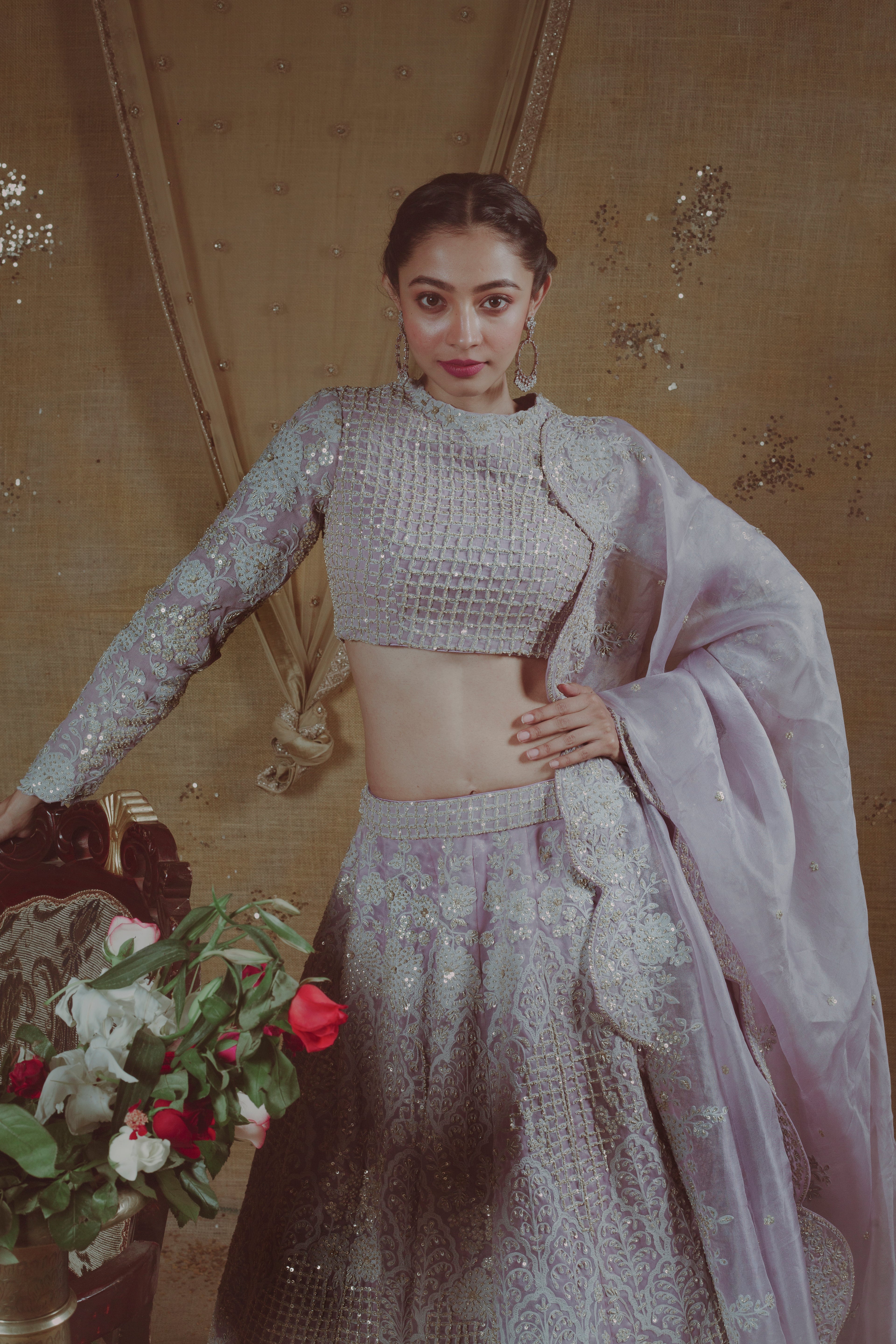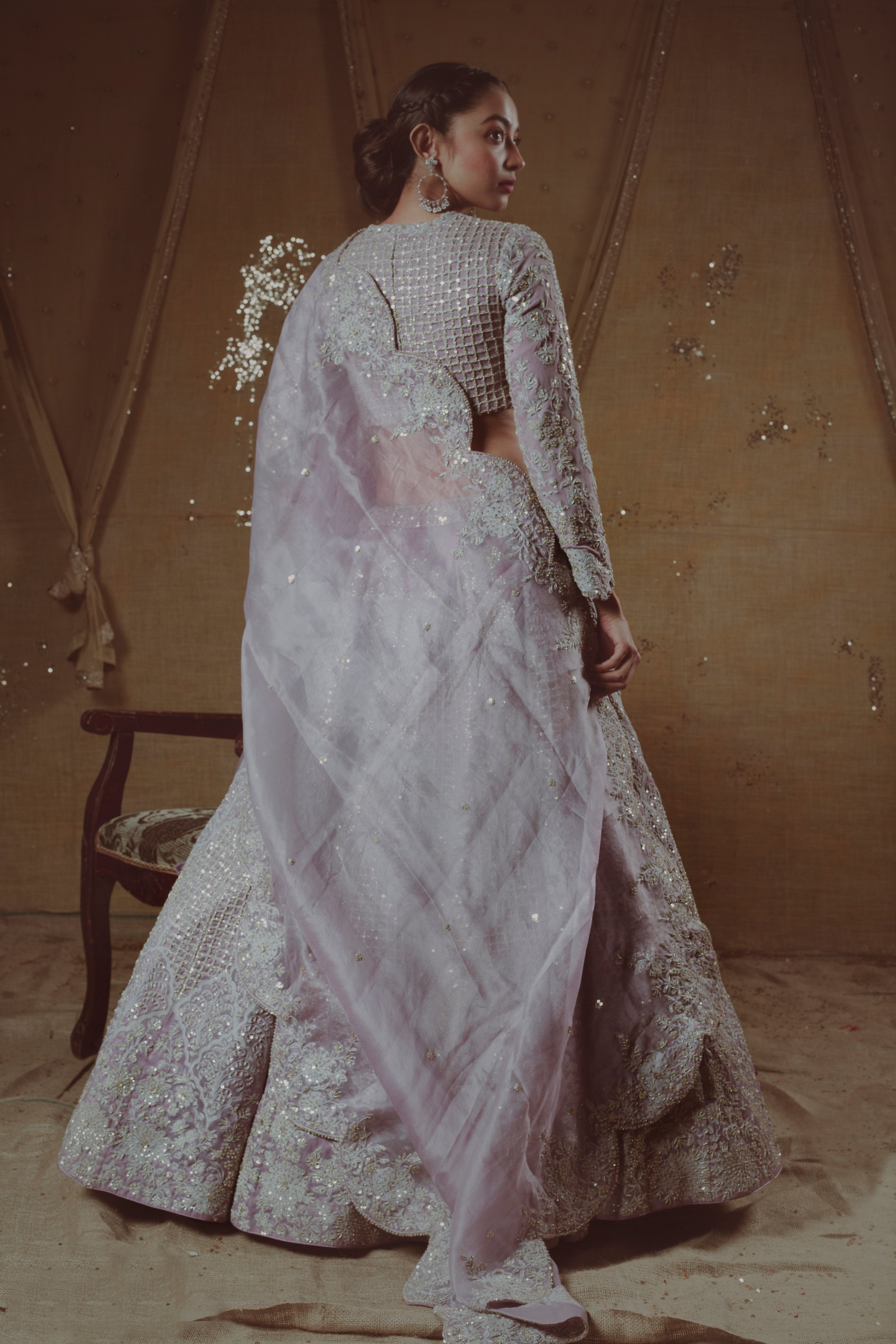 Crafted from luxurious raw silk, and adorned with a delicate fusion of net, cotton, and satin fabrics, this ensemble presents a symphony of textures. The intricate detailing on the raw silk lehenga, coupled with the ethereal softness of net, cotton, and satin, creates a masterpiece that not only captivates the eye but also envelops you in comfort. Immerse yourself in the graceful dance of fabric and design as you take center stage in the spotlight of your joyous celebration. “Harmony Silk Whispers” – where luxury meets comfort in a celebration of style.